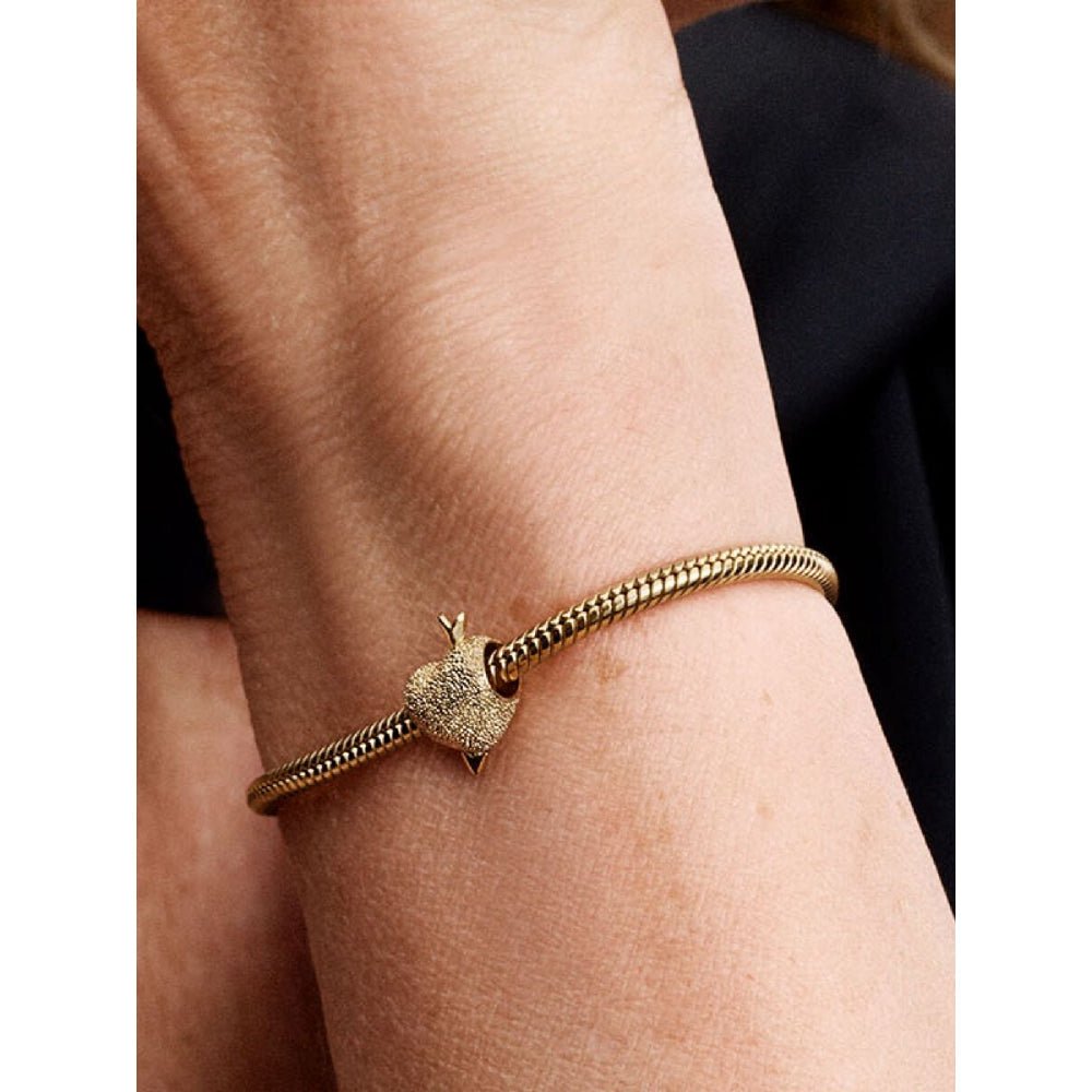 Hand-finished and plated in 14k gold, this charm features Cupid's signature arrow and a diamond-point technique that adds texture to the surface. Please note: this charm is smaller than standard Pandora Moments charms.