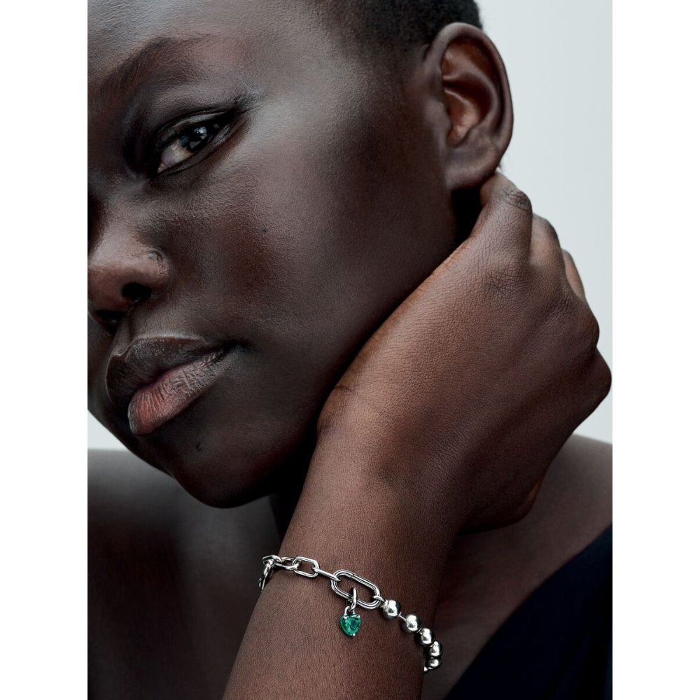 A green heart-shaped man-made crystal - and matching enamel - sit at the centre of this sparkling dangle charm. With grooved lines and cut-out detailing, this mini dangle charm brings depth to your look, literally and figuratively.