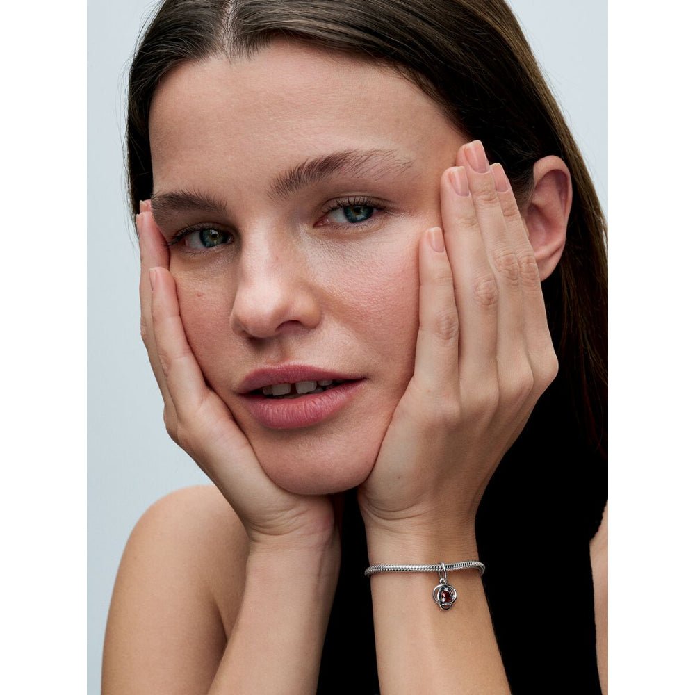 A touch of sparkle, whatever your outfit. Combining a red man-made crystal and clear cubic zirconia, this charm's intricate, openwork design symbolises eternity. Elevate your own chain, or gift it as a symbol of an everlasting bond.