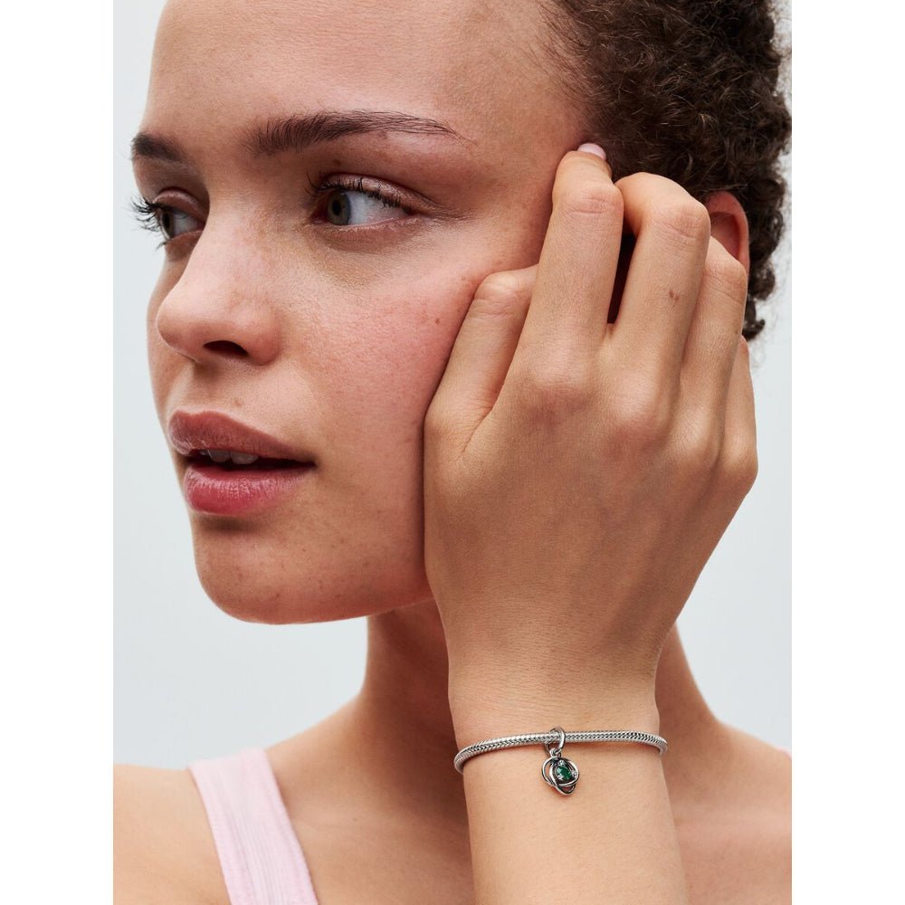 Add a touch of sparkle to your look. Combining a green man-made crystal and clear cubic zirconia, this charm's intricate, openwork design symbolises eternity. Elevate your bracelet with this timeless piece or gift it as a symbol of an everlasting bond.