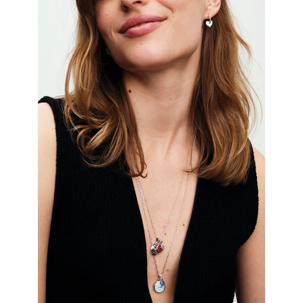Love has no limits when you wear the Pandora ME Blue Chakra Heart Mini Dangle Charm. This sterling silver heart charm features transparent blue hand-applied enamel and a blue heart-shaped man-made crystal atcentre. The reverse side features a polished sterling silver heart with grooved lines and cut-out detailing. A reminder that wild hearts can't be broken, this mini dangle charm brings a depth to your look, symbolising that love - for yourself and others - always wins. Compatible with Pandora ME and Pandora Moments.