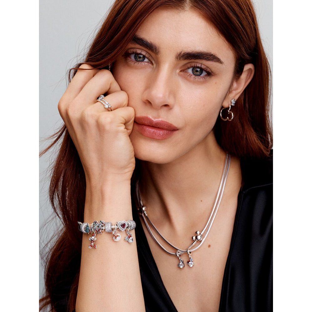 Crafted in sterling silver with enamel details, Disney Minnie Mouse's iconic red bow and cheerful facial expressions come to life as she ice-skates her way into your collection.