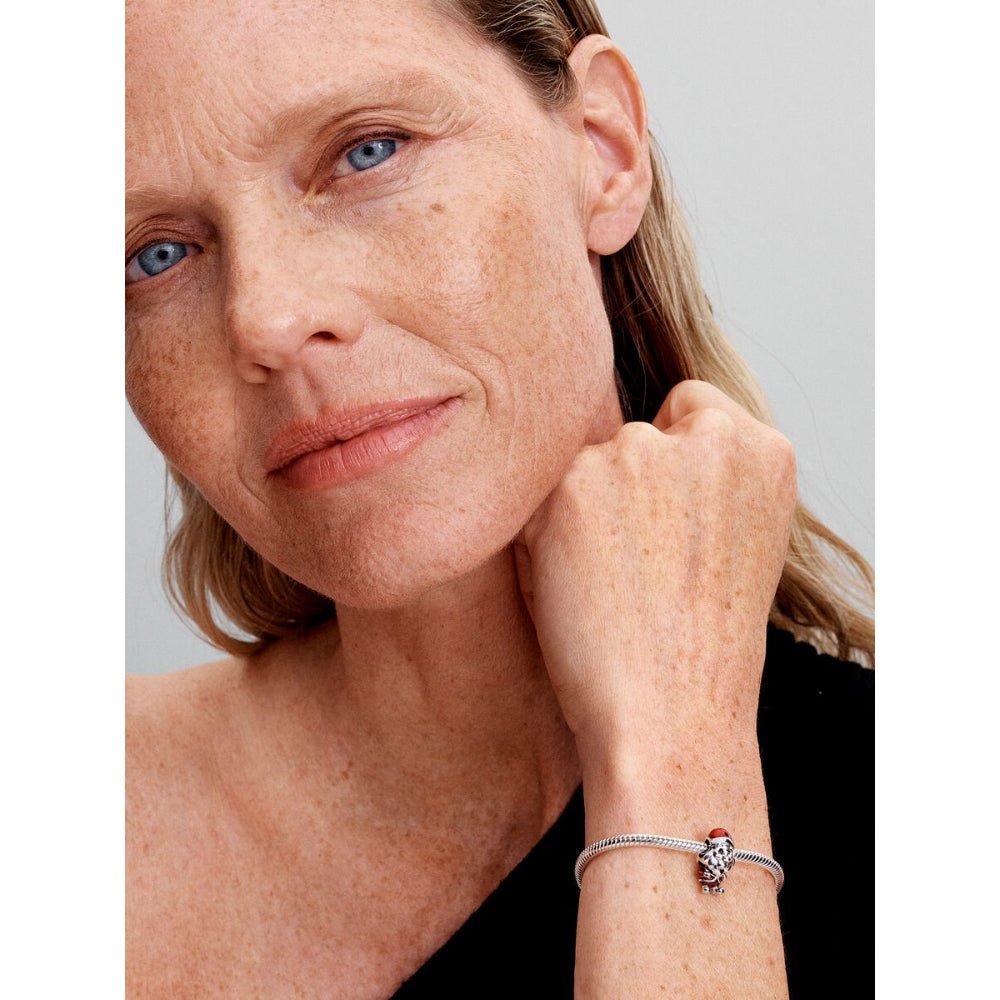 Our Santa charm makes the season merry and bright, crafted in sterling silver with glittery enamel details. His body can even move from side to side for an extra jolly effect.