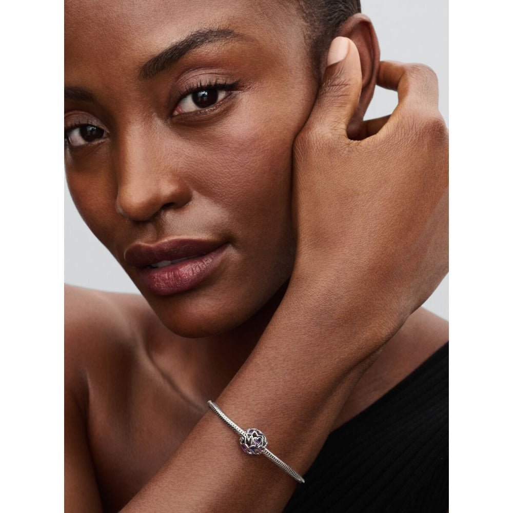 Honour the bonds of motherhood with a charm featuring delicate hearts, meaningful details and a cool lavender hue.