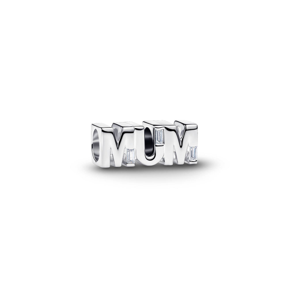 Mum's the word. Literally. Celebrate motherhood in all its forms with our bold word charm. Crafted in sterling silver, each letter features a clear cubic zirconia stone set for an extra touch of sparkle.