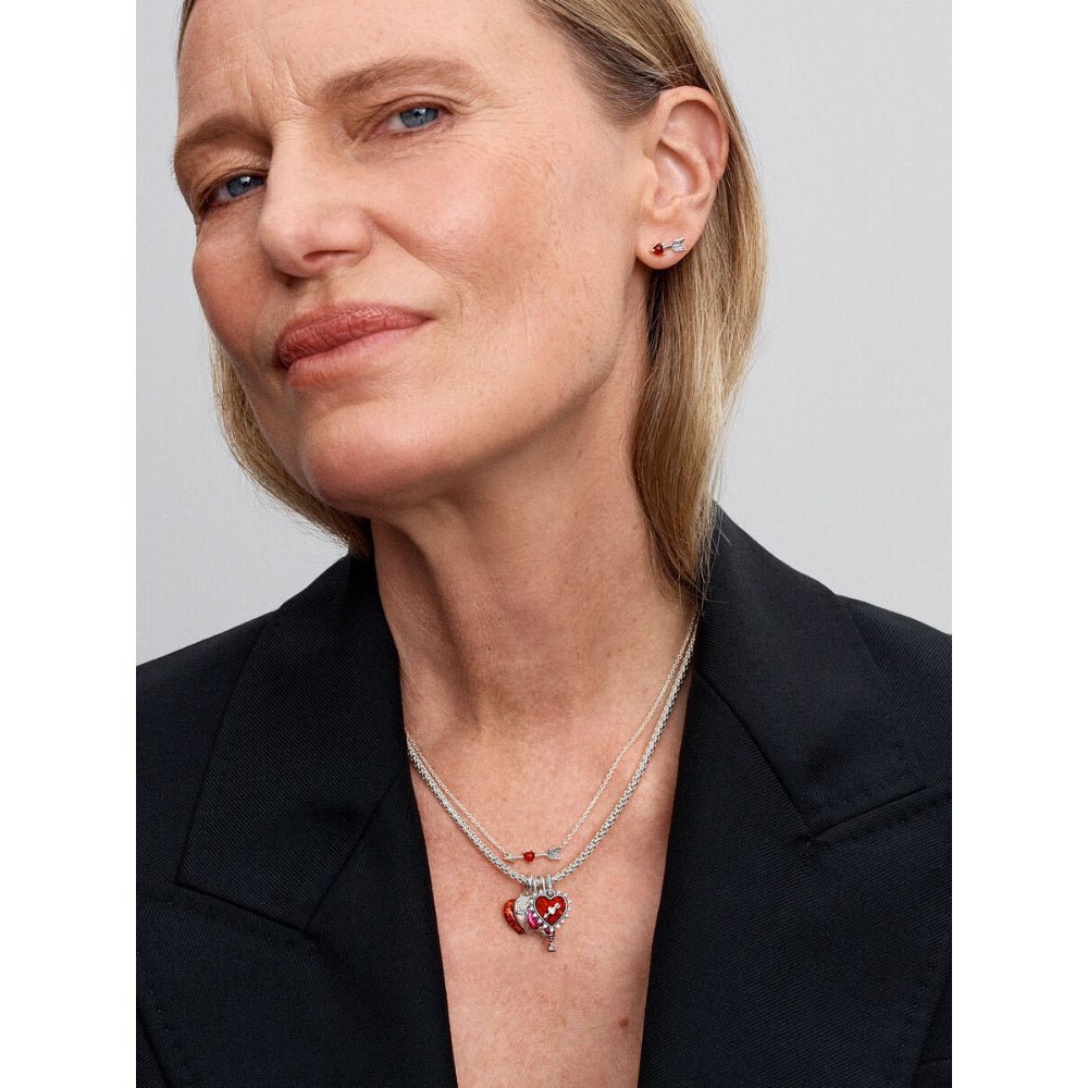Finished by hand, this sterling silver charm features a spinning arrow and a radiant red lab-created opal heart. A "Follow your heart" engraving and pave-set stones add sparkle to this playful piece. ...