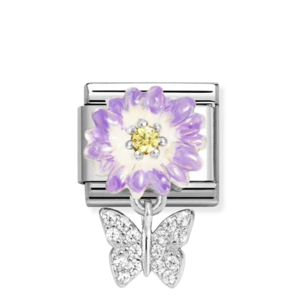Nomination Silver With Purple Flower Butterfly Dangle Charm