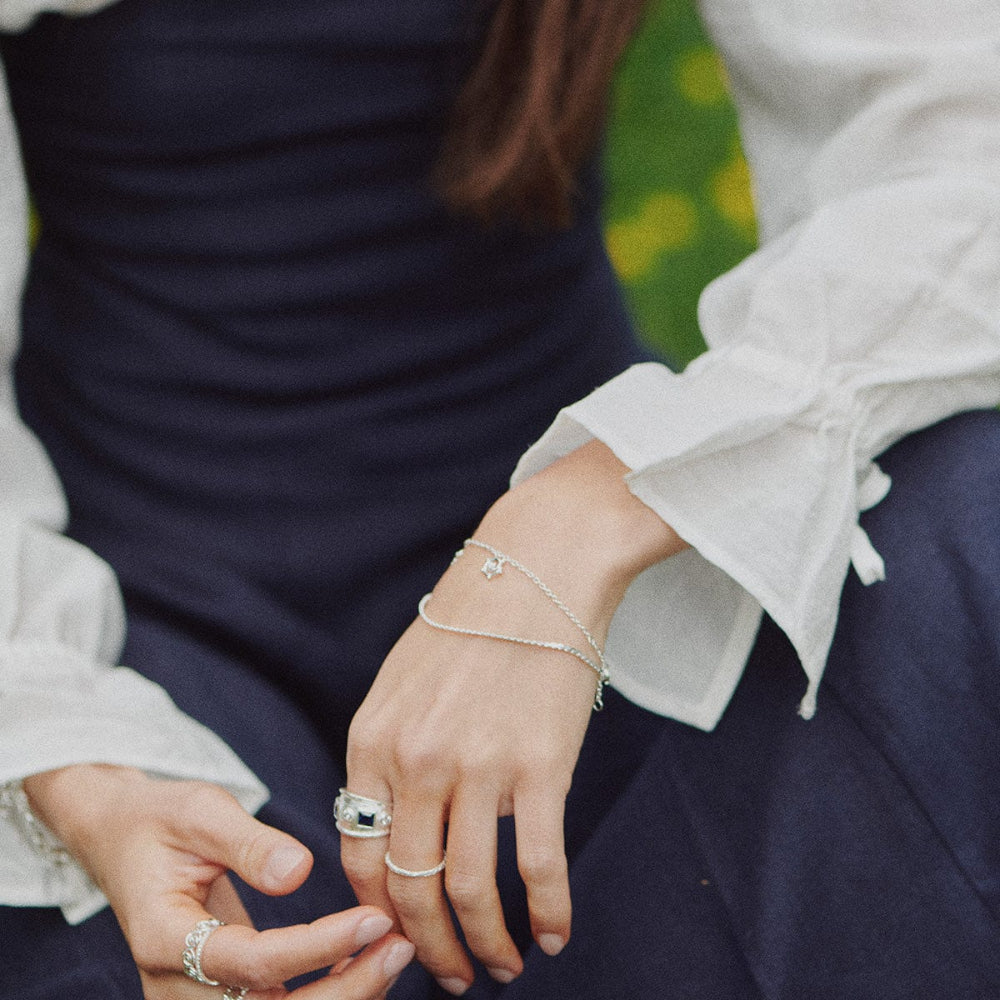 Recycled sterling silver is made of a minimum of 92.5% solid silver and we're proud to say that all our silver jewellery is made from 100% recycled materials.