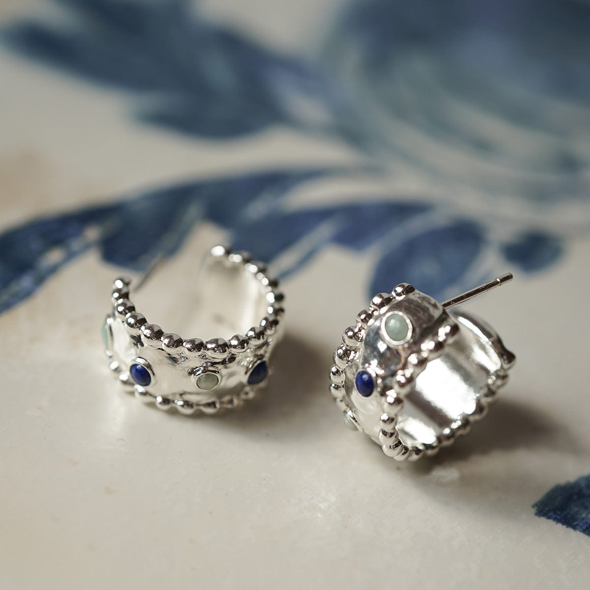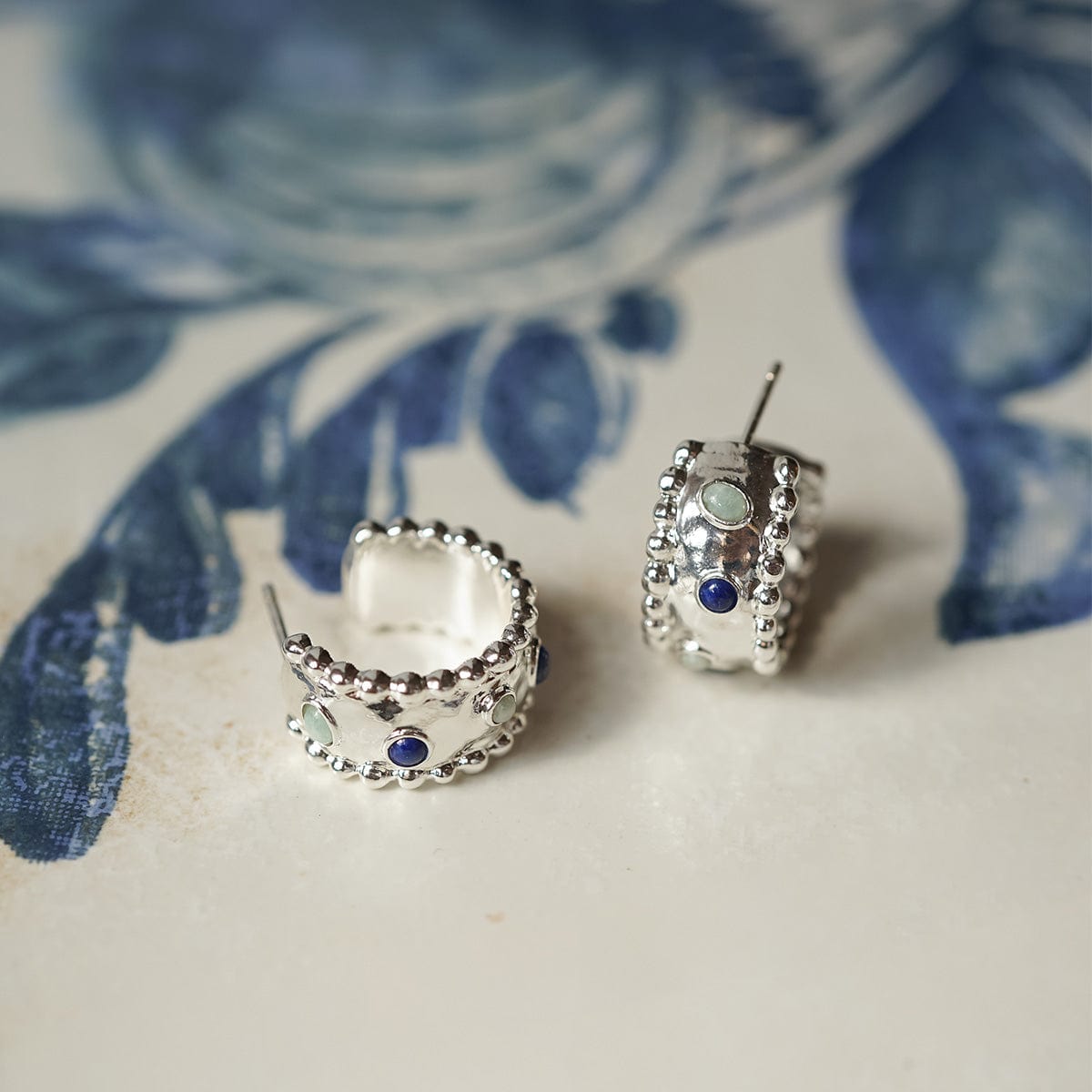 Daisy Ethical Silver - Plated Amulet Hoop Earrings with Lapis Lazuli and Amazonite Stones - MococoDaisy LondonSE18_SLVEarrings