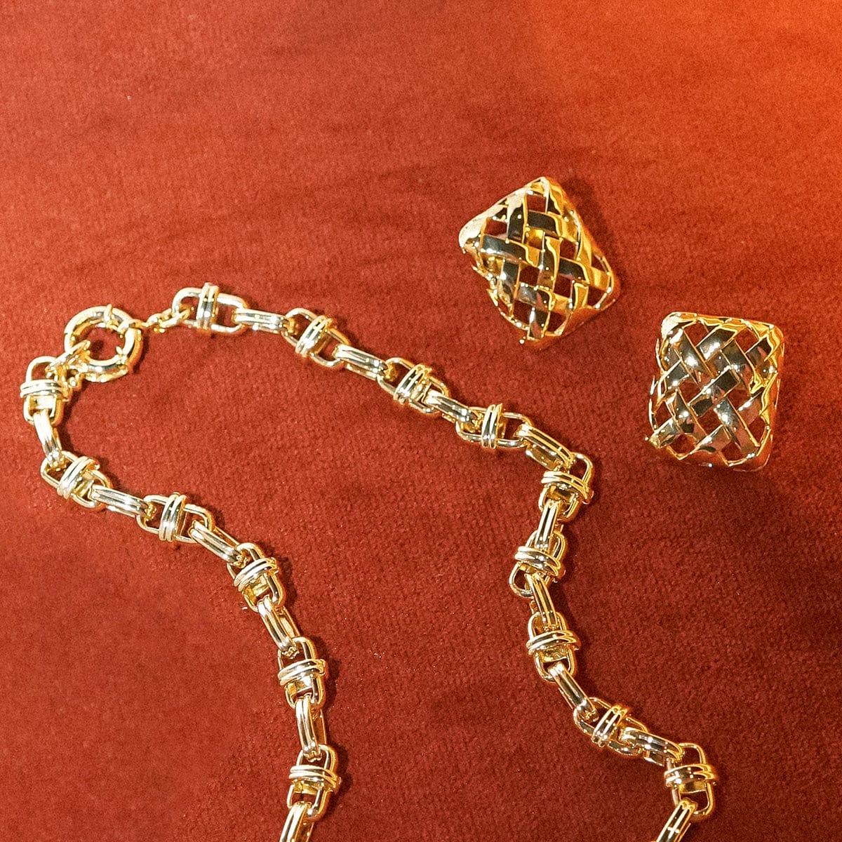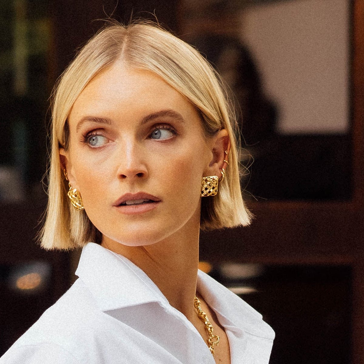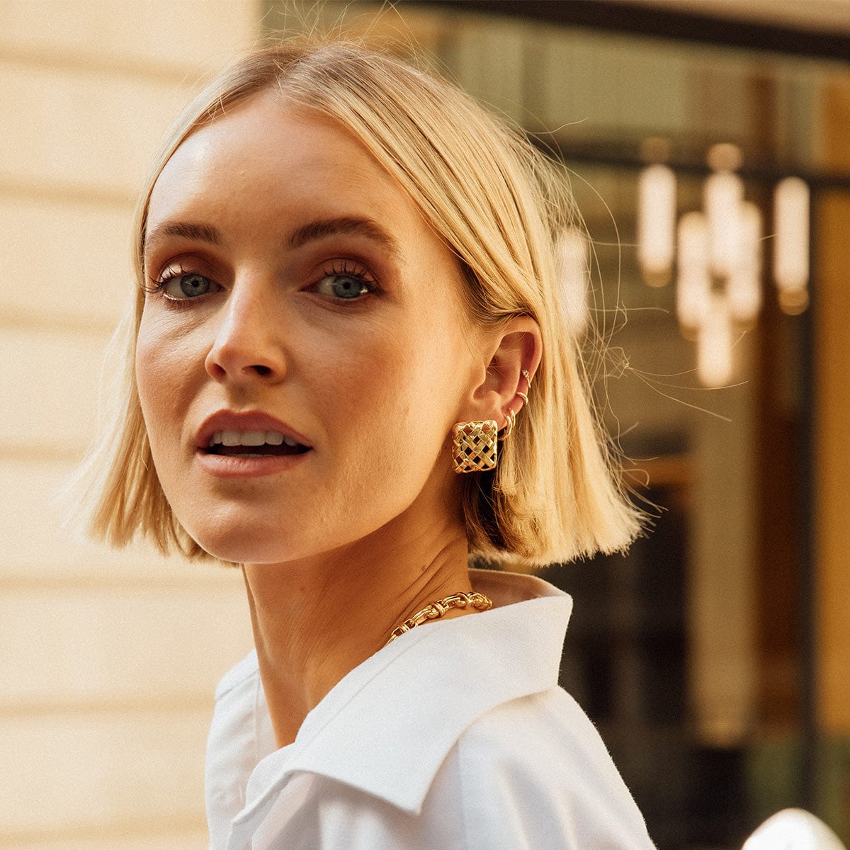 Daisy Polly Woven Square Stud Earrings: Elegant 18ct Gold Plated Modern Statement Jewellery