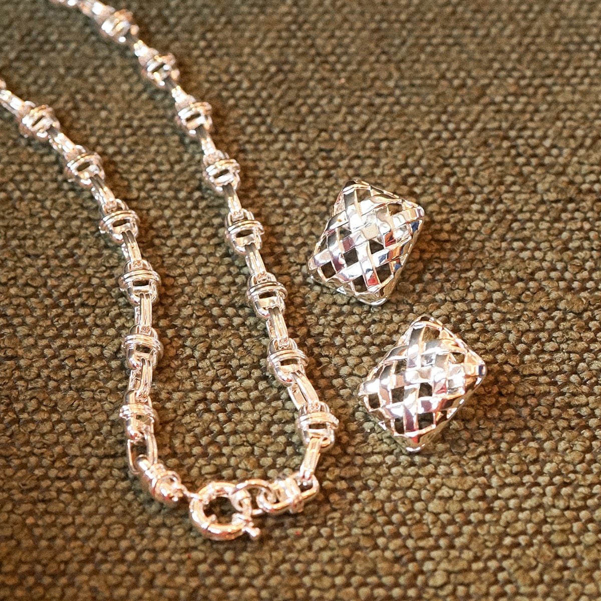 Daisy Polly Woven Square Stud Earrings: Elegant Silver Plate Jewellery for Everyday Style