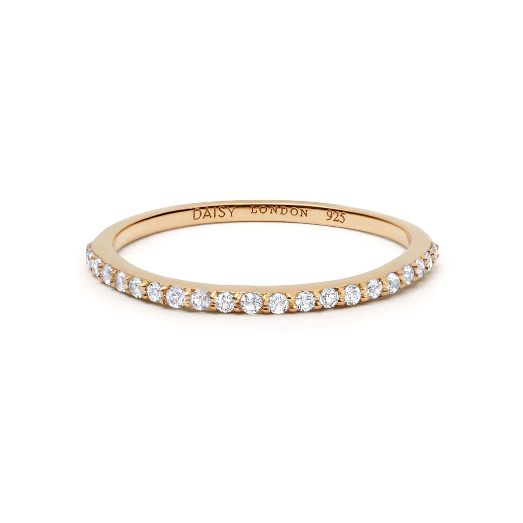 Featuring sparkling white topaz stones set on a slender band, this sophisticated stacking piece is crafted from 100% recycled sterling silver and finished in either pure silver or 18ct gold plate. Perfect for layering or wearing solo, each ring is uniquely cut from ethically sourced semi-precious stones.