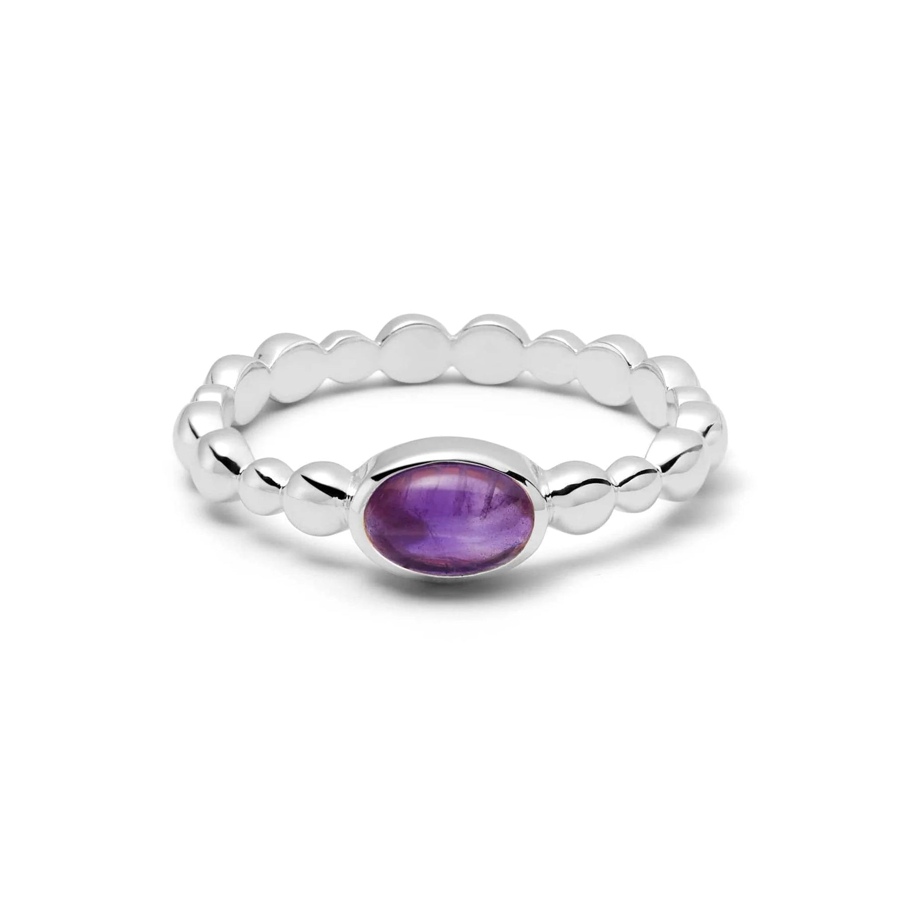 Bring fresh energy to your ring rotation with the Healing Stone Bobble Ring. Featuring a 6 x 4mm oval gemstone set on a 2mm band, it’s perfect for stacking with other textured or stone rings. Available in both 18ct gold plated and 100% recycled sterling silver finishes, each ring is crafted with ethically sourced, natural semi-precious stones for a unique sparkle.