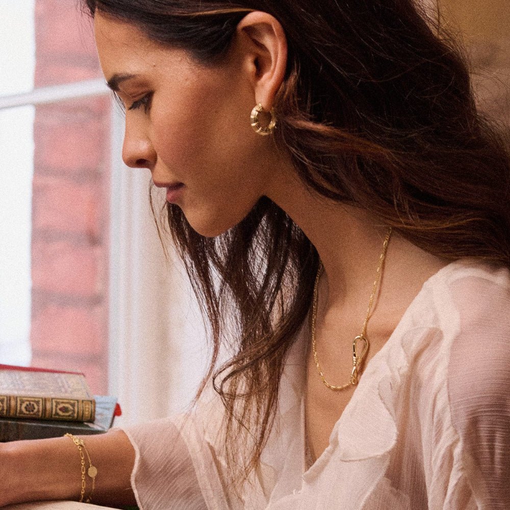 A classic with a celestial twist. Inspired by vintage chains and the energy of the sun, the Apollo Carabiner Necklace is your new layering essential. Crafted from 100% recycled sterling silver with 18ct gold plate, its intricate links catch the light wherever you go.