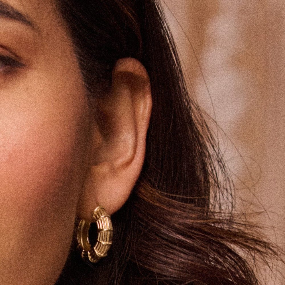 Designed to turn heads from sunrise to sunset, the Apollo Large Hoops are your statement-makers. Stacked with studs or worn alone, they radiate confidence with every wear. Made from recycled brass and 18ct gold plate.