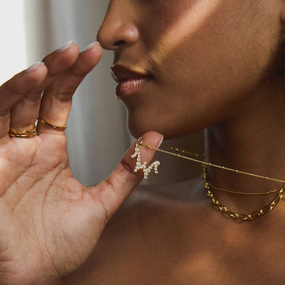 Spell it out with pearls. Made from 100% recycled sterling silver and 18ct gold plate this pearl initial charm is a mixture of faux and shell pearls. The perfect personalised touch to add to your jewellery box. Clip this charm on your favourite chunky chain necklace or bracelet for a one-of-a-kind stack. Shell pearlsare made from the inner lining of shells and are also known as mother of pearl. Ground, shaped then coated; shell pearls perfectly imitate those which are naturally formed.