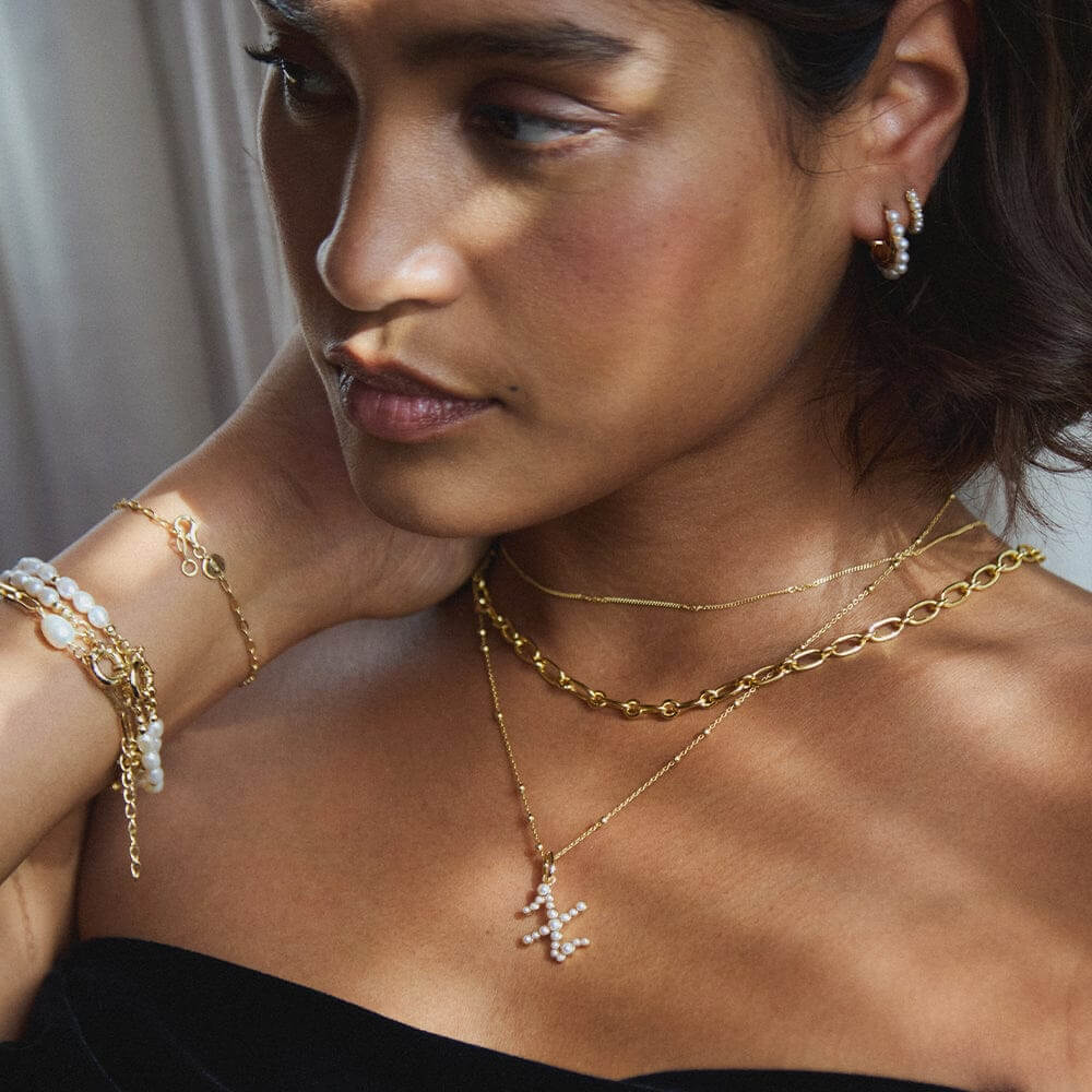 Spell it out with pearls. Made from 100% recycled sterling silver and 18ct gold plate this pearl initial charm is a mixture of faux and shell pearls. The perfect personalised touch to add to your jewellery box. Clip this charm on your favourite chunky chain necklace or bracelet for a one-of-a-kind stack. Shell pearlsare made from the inner lining of shells and are also known as mother of pearl. Ground, shaped then coated; shell pearls perfectly imitate those which are naturally formed.