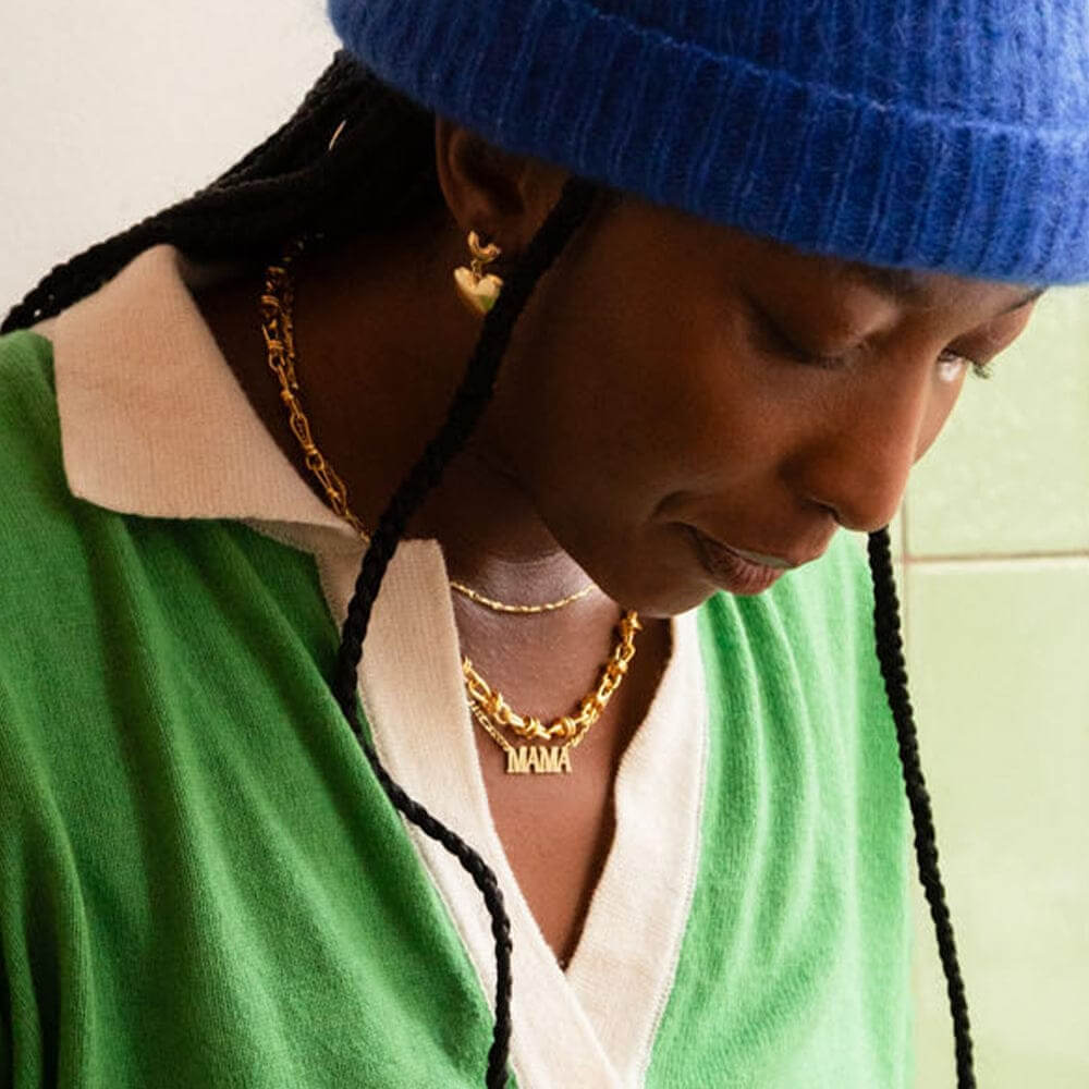 Oh mama do we adore this piece. This understated personalised necklace will both upgrade your stack and give the most giving woman in your life a much needed thank you. Hung on our signature Figaro chain, this 18ct gold plated necklace is sure to become a staple in any jewellery box.
