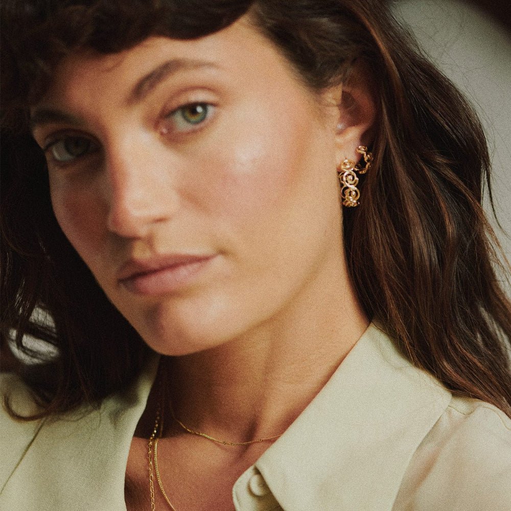 Shaped by sunshine. These 18ct gold plate hoops twist and turn with bold curves, designed to bring bold summer energy all year round.