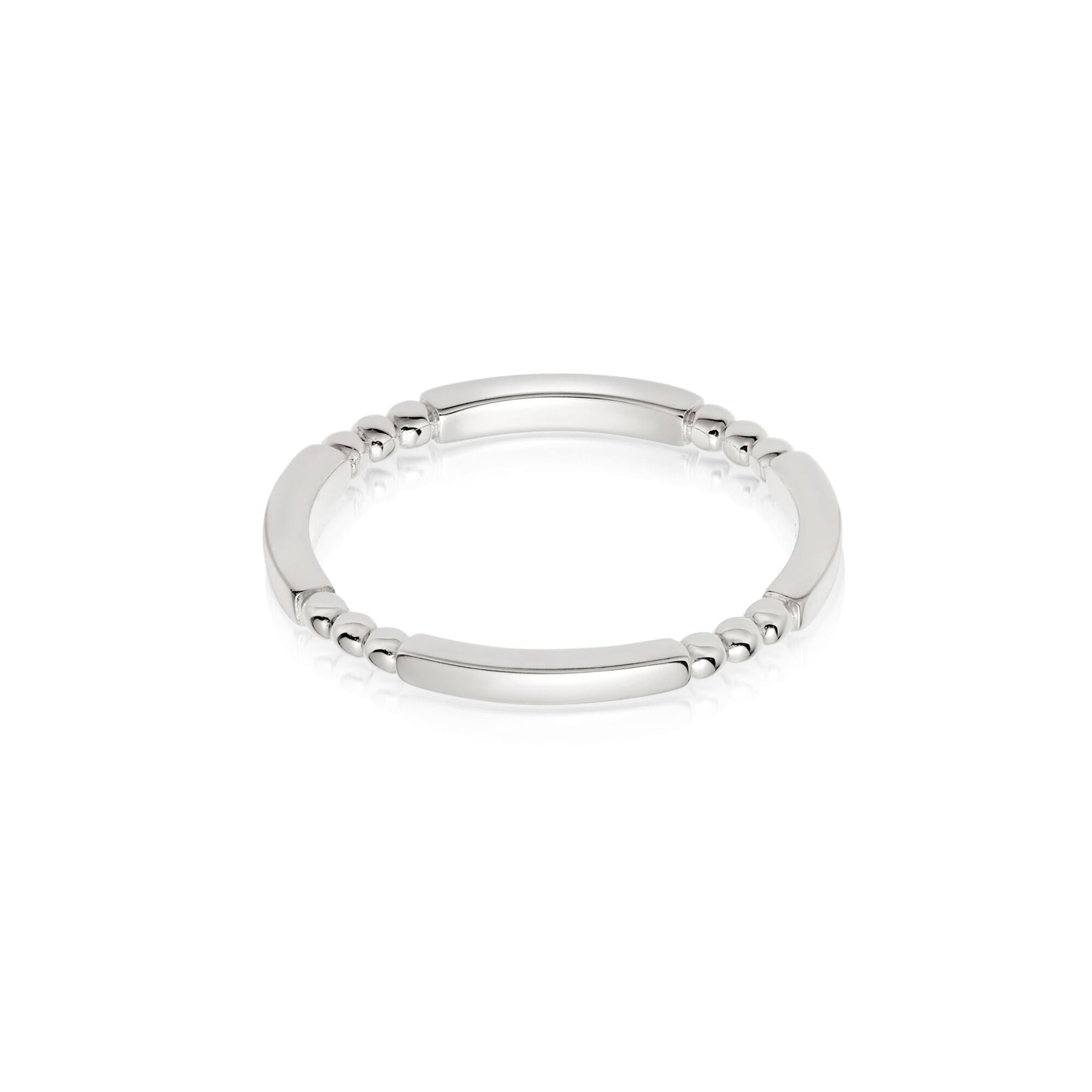 The Stacked Thin Ring has an elevated geometric look, featuring a bold bead and bar design. This collection was made to be stacked so layer this up with the Chunky Stacked rings.