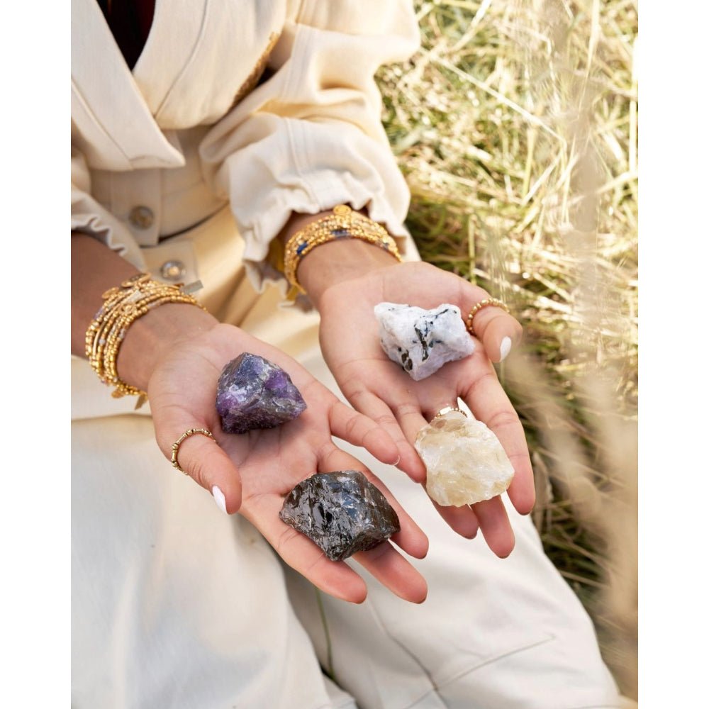 The lustrous gold-plated chain complements the natural beauty of the stones, catching the light in a way that feels both modern and timeless. Perfect for layering with your favourite chains or wearing as a statement piece, it brings together style, symbolism, and soul. It’s not just an adornment — it’s a piece of your story, a reflection of your energy, and a quiet reminder to live with intention.