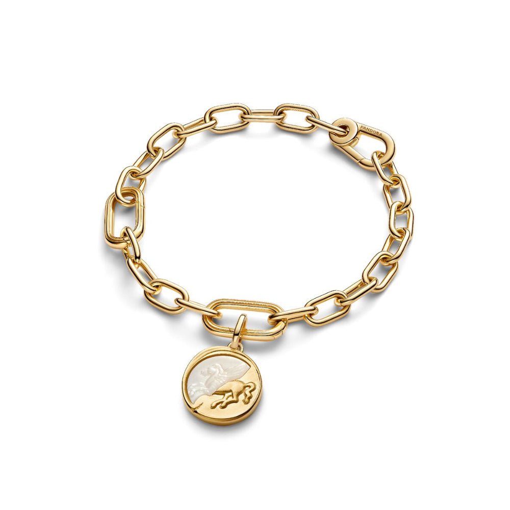 Pandora Gold and White Talisman Medallion Pegasus Mother Of Pearl Charm