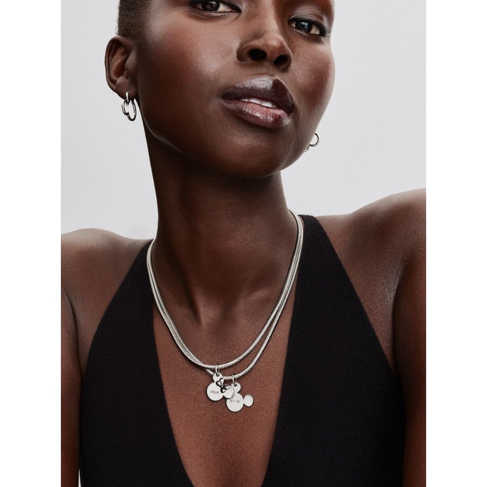 Introducing the first-ever engravable Disney x Pandora pendant, featuring Minnie Mouse's iconic silhouette in sterling silver.