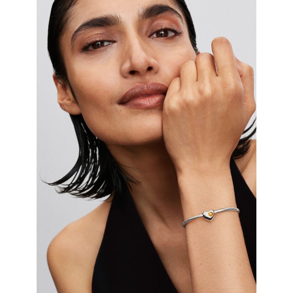 Pandora Moments Silver and Honey Coloured Engravable Heart Crystal Charm