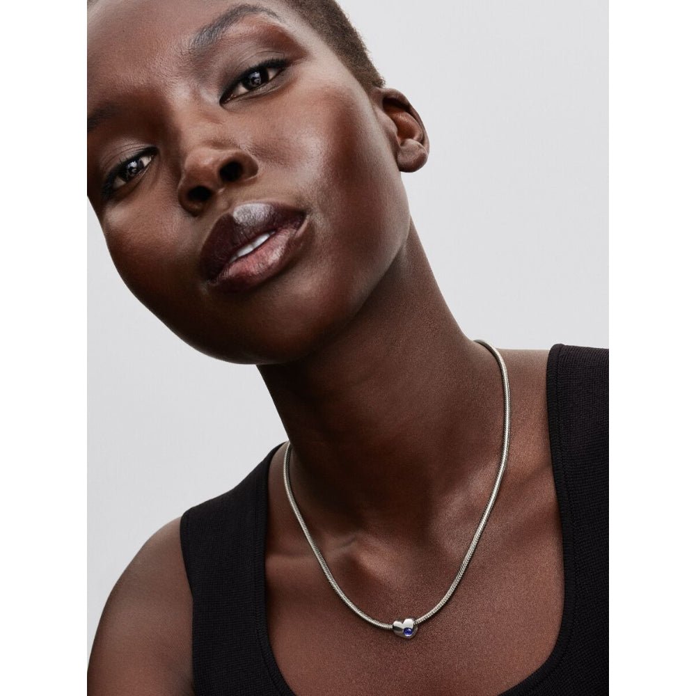 Pandora Moments Silver and Blue Crystal Engravable Heart Princess Charm