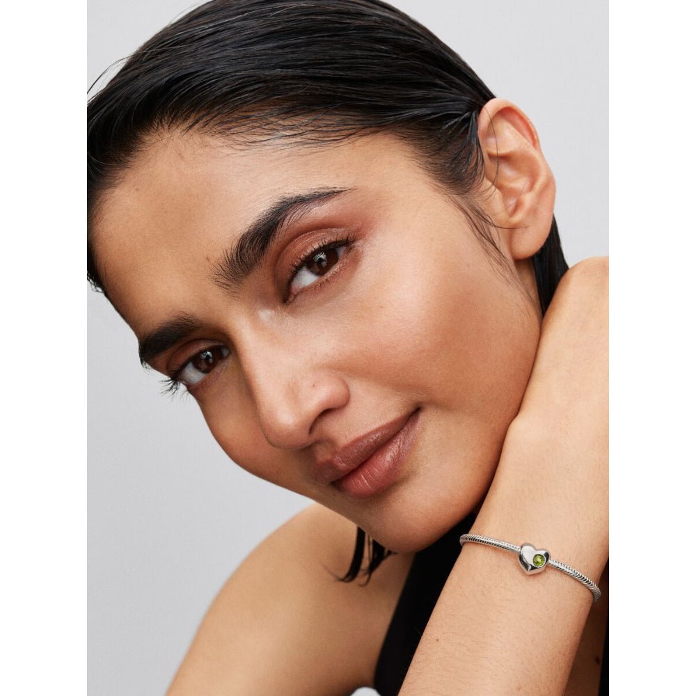 Pandora Moments Silver and Green Engravable Heart Spring Crystal Charm