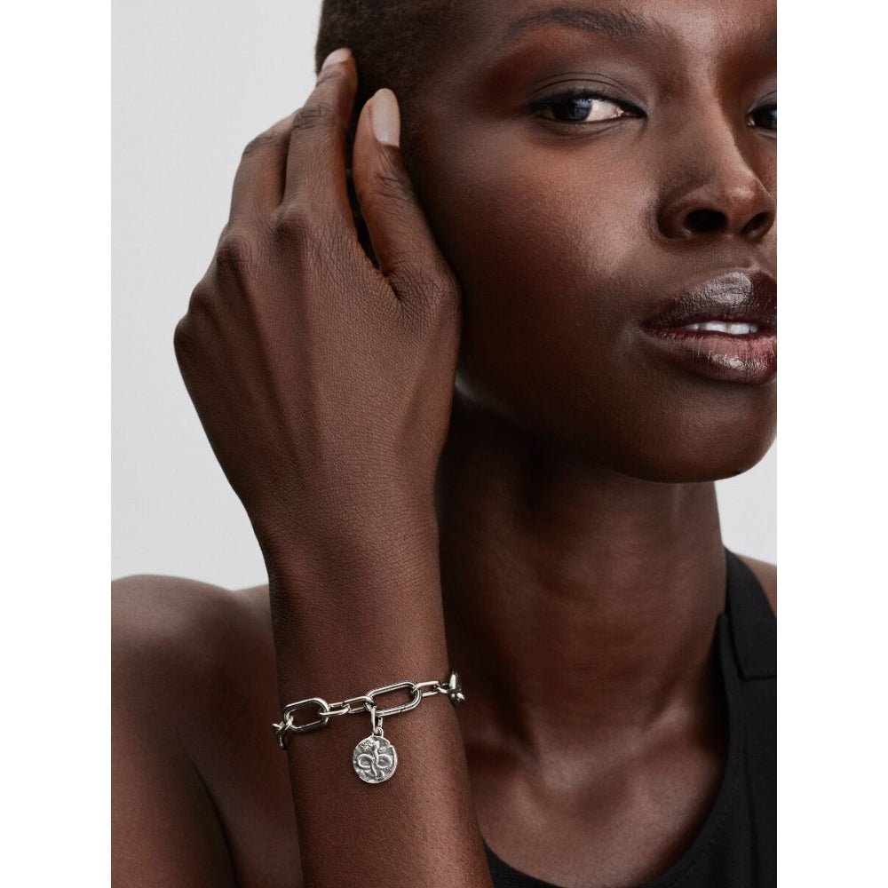 A symbol of renewal, coiled in sterling silver. Inspired by ancient coins, this powerful medallion features a flush-set clear cubic zirconia and is engraved with 'MEMENTO VIVERE' - Latin for 'REMEMBER TO LIVE'.
