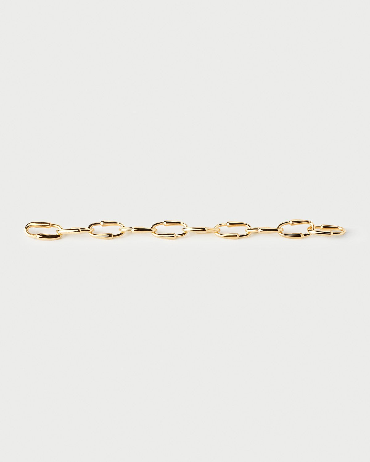 Bold and stylish, the Loop Gold Chain Bracelet makes a statement with its oversized links and polished finish. Its adjustable length ensures a comfortable fit, making it a versatile accessory for both casual and dressy looks.