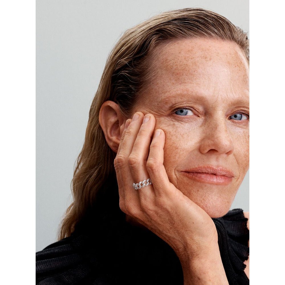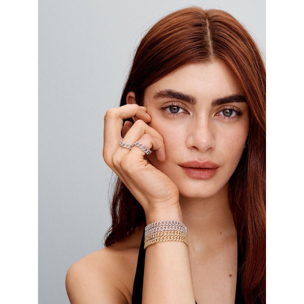 Crafted in sterling silver with 84 clear cubic zirconia, this ring features a stunning Cuban chain motif with pave stones on each link. The polished back ensures comfort, and the flat logo adds a touch of elegance.