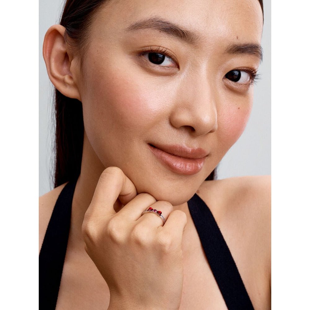 This sterling silver piece features a red enamelled bow, with a sparkling stone at its centre. Stack several together for a look with princess energy, inspired by the kindness and optimism of Disney's Snow White.