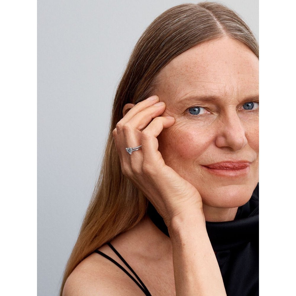 This ring features a heart-shaped cubic zirconia, set in the centre of a polished band and a pave band. The bands are held together by the heart, creating a meaningful ring that celebrates the bonds that connect us.