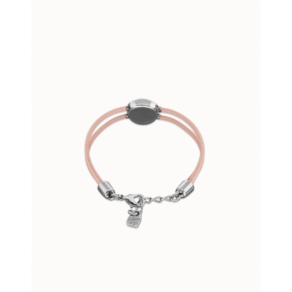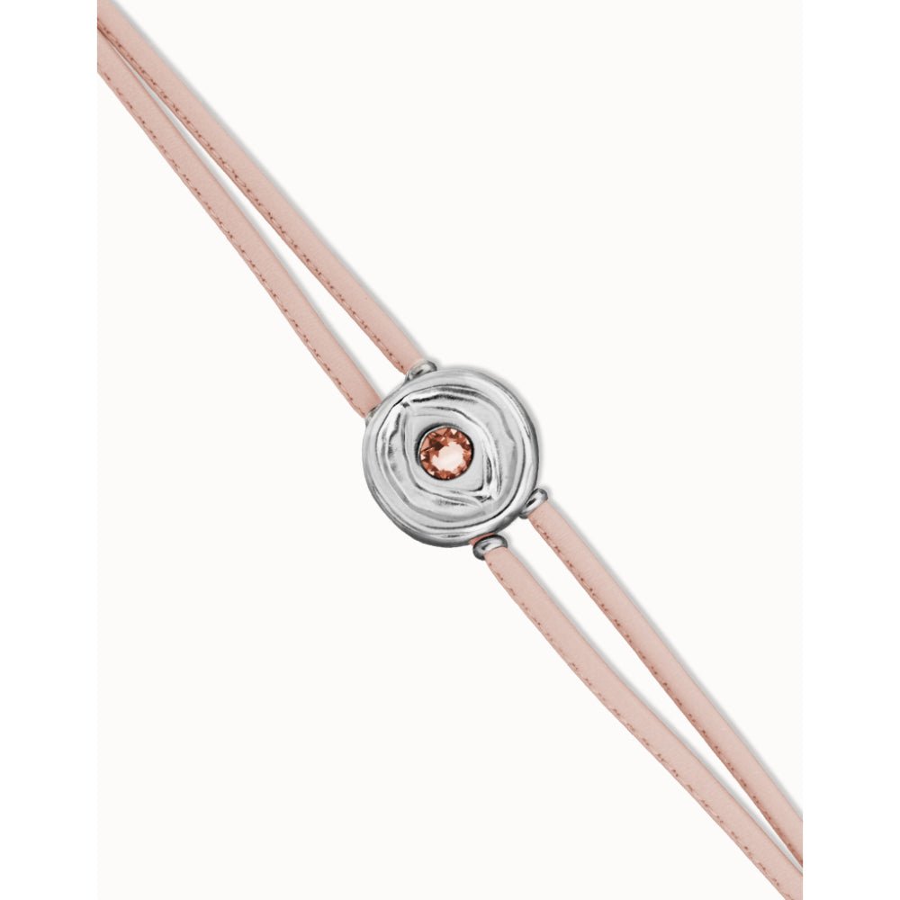 Unode50 Sterling Silver Double Pink Leather Birthstone Eye Bracelet
