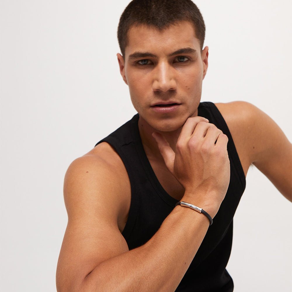 Unode50 Sterling Silver-Plated Metal Alloy Clasp Leather Bracelet