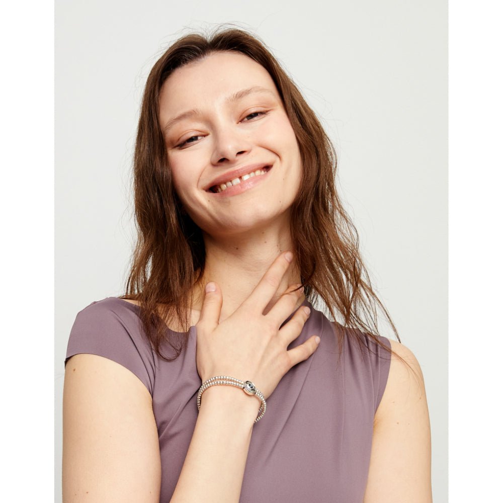 Silver double beads bracelet with eye and blue crystal. There are people who are visionary, whose intuition is their compass. Ser intuitiva takes into consideration that mystical side of us, allowing us to bring out our hidden self and show it to the world.