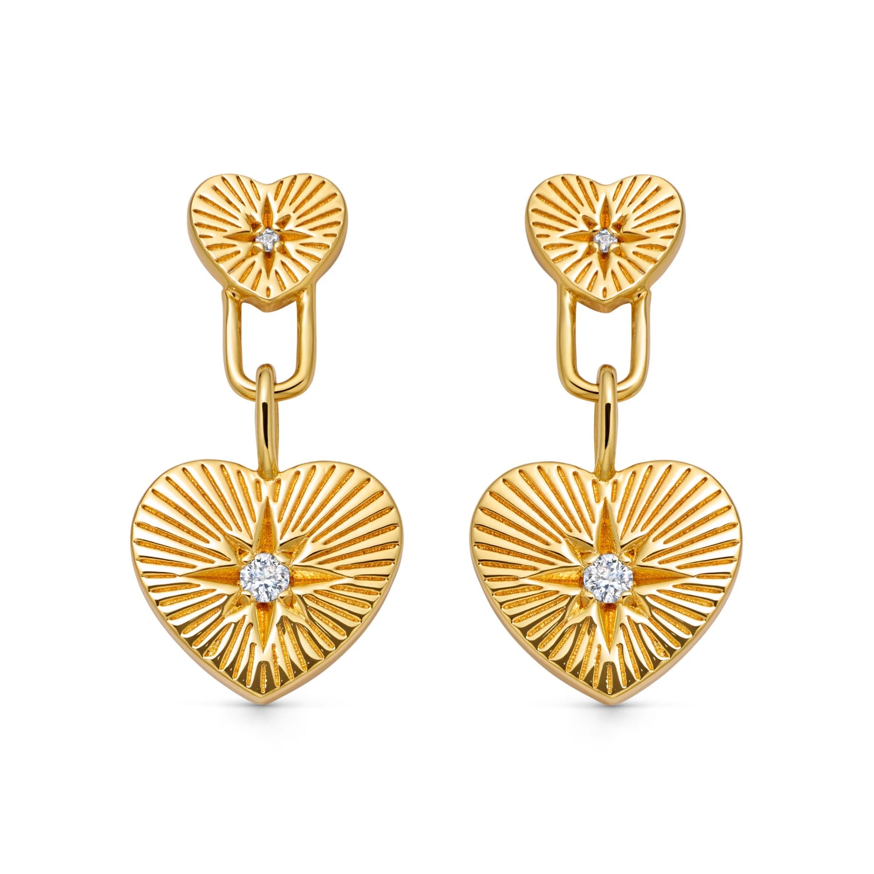 Astley Clarke Double Heart Drop Earrings - Gold Vermeil & White Sapphire