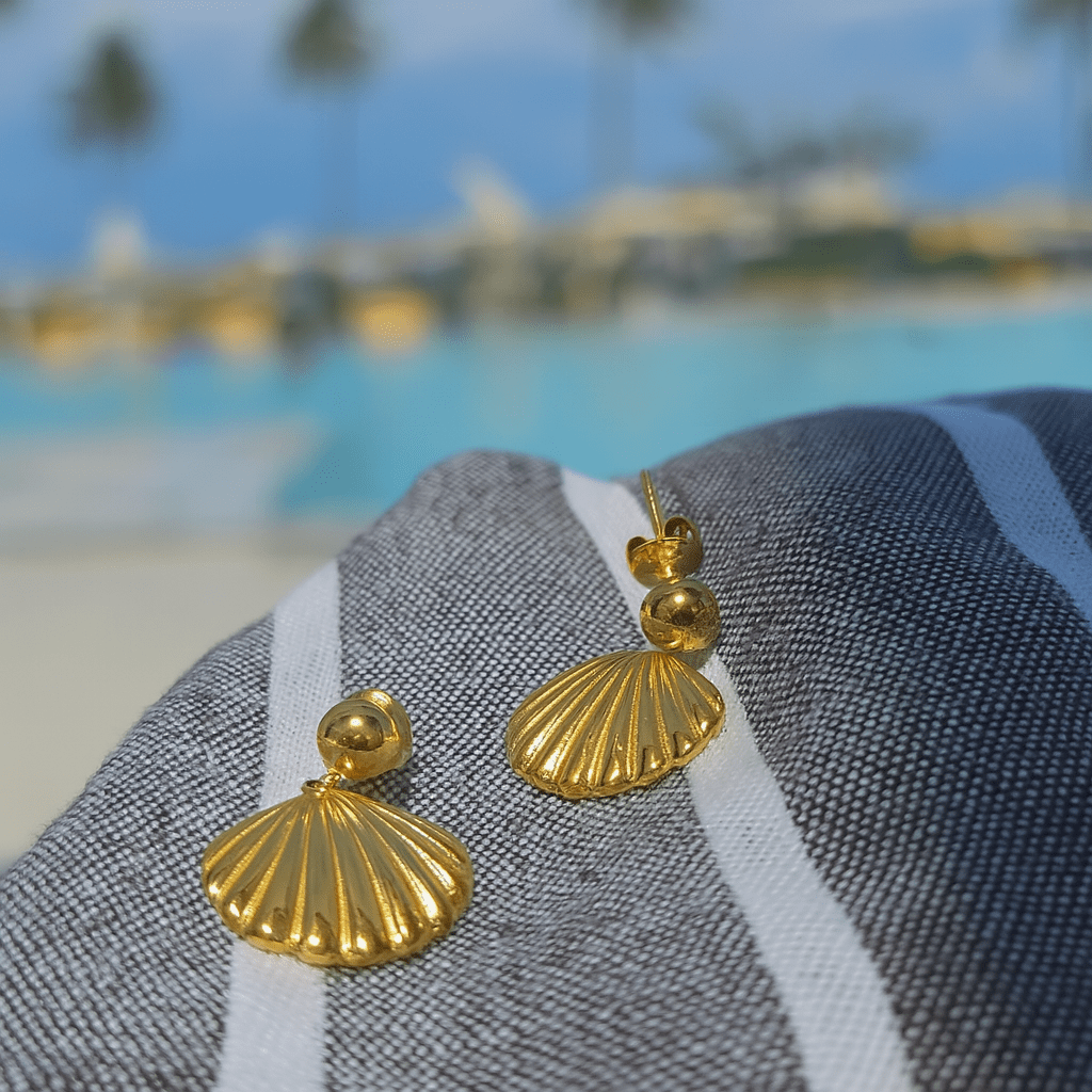 Embrace coastal elegance with our stunning Gold Dangle Shell Earrings Transform any outfit into a statement of sophisticated beach-inspired style. These exquisite earrings feature delicate shell charms suspended from lustrous gold-toned settings, creating the perfect balance of natural beauty and refined glamour.