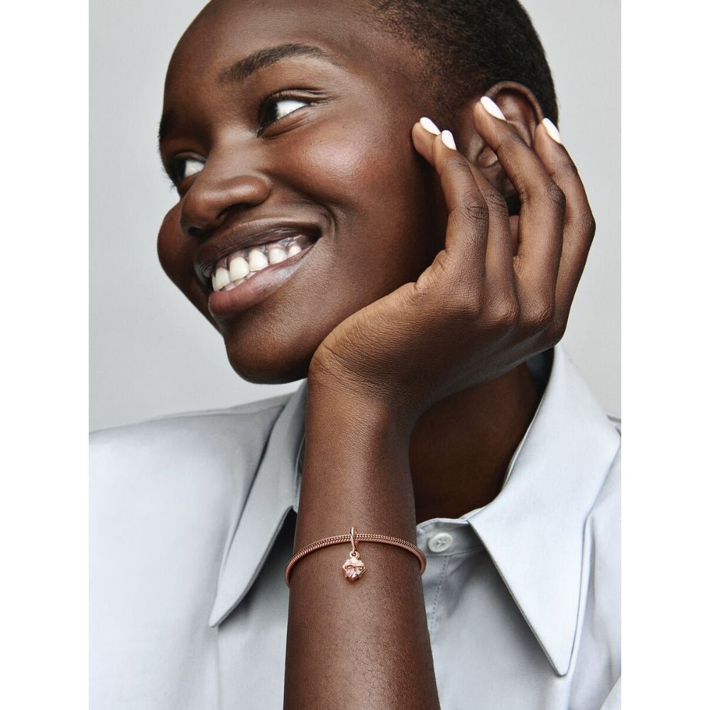 A sweet gift to make your loved one's birthday even more special. The Openable Birthday Gift Dangle Charm is finished in warm 14k rose gold plating and is shaped like a gift box with a soft pink enamel ribbon and bow. Open the box and you'll discover a raised heart with the engraved message "Happy Birthday." A special jewellery gift they can wear all year to remember that birthday glow.