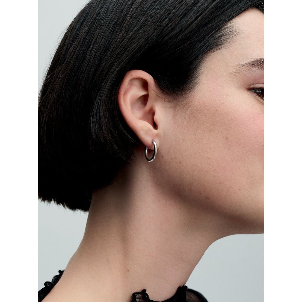 Personalise a style essential with the Pandora Moments 18 mm Charm Hoop Earrings. Crafted of sterling silver these earrings feature a rounded profile and our iconic Pandora logo on the hoops' interior. Designed to be personalised with one charm or dangle charm per hoop, these earrings invite you to style them to suit any mood, personality or occasion. Collect and curate your favourite charms and play with different combinations to make a customised statement with any look.