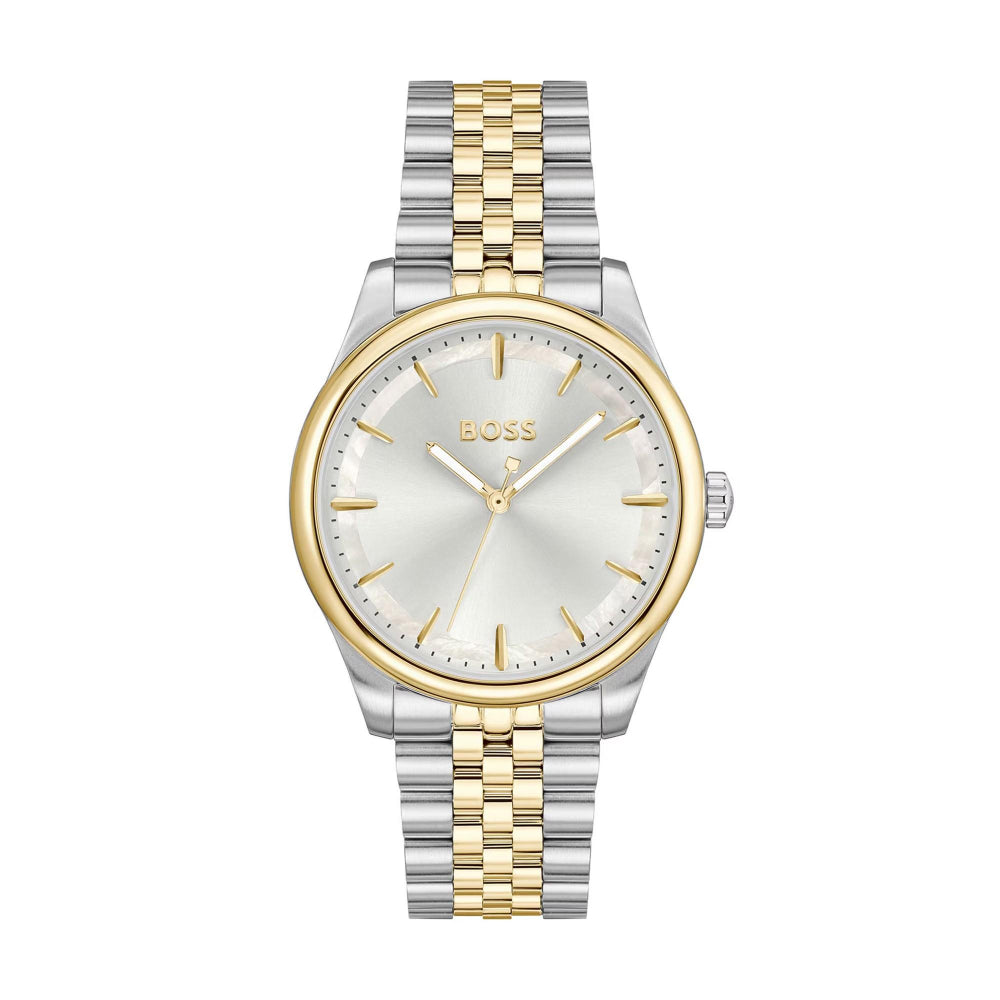 Boss ladies three hand from the Graceful family. Featuring a 36mm stainless steel case, light gold IP bezel, silver dial with stainless and light gold IP bracelet. Water resistant to 3ATM.