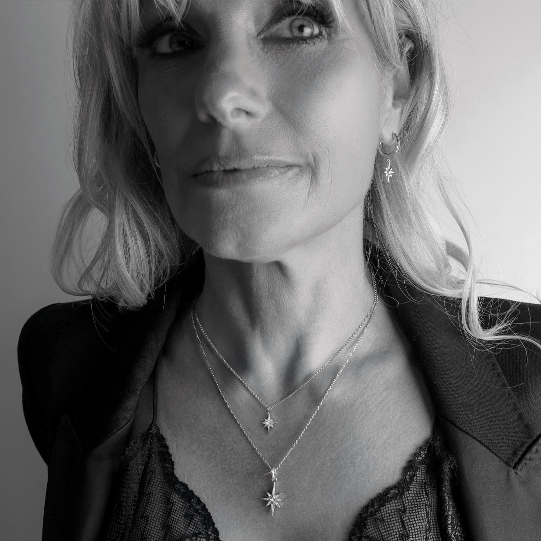 Introducing the Céleste North Starburst Hinged Hoop Drop Earrings in Sterling Silver – a radiant design fusion of style and glamour. Set with brilliant Cubic Zirconia, each hoop radiates with Pavé-set sparkles to the front with a beautiful eight-pointed star pendant hanging below that is also adorned with Pavé glitz.