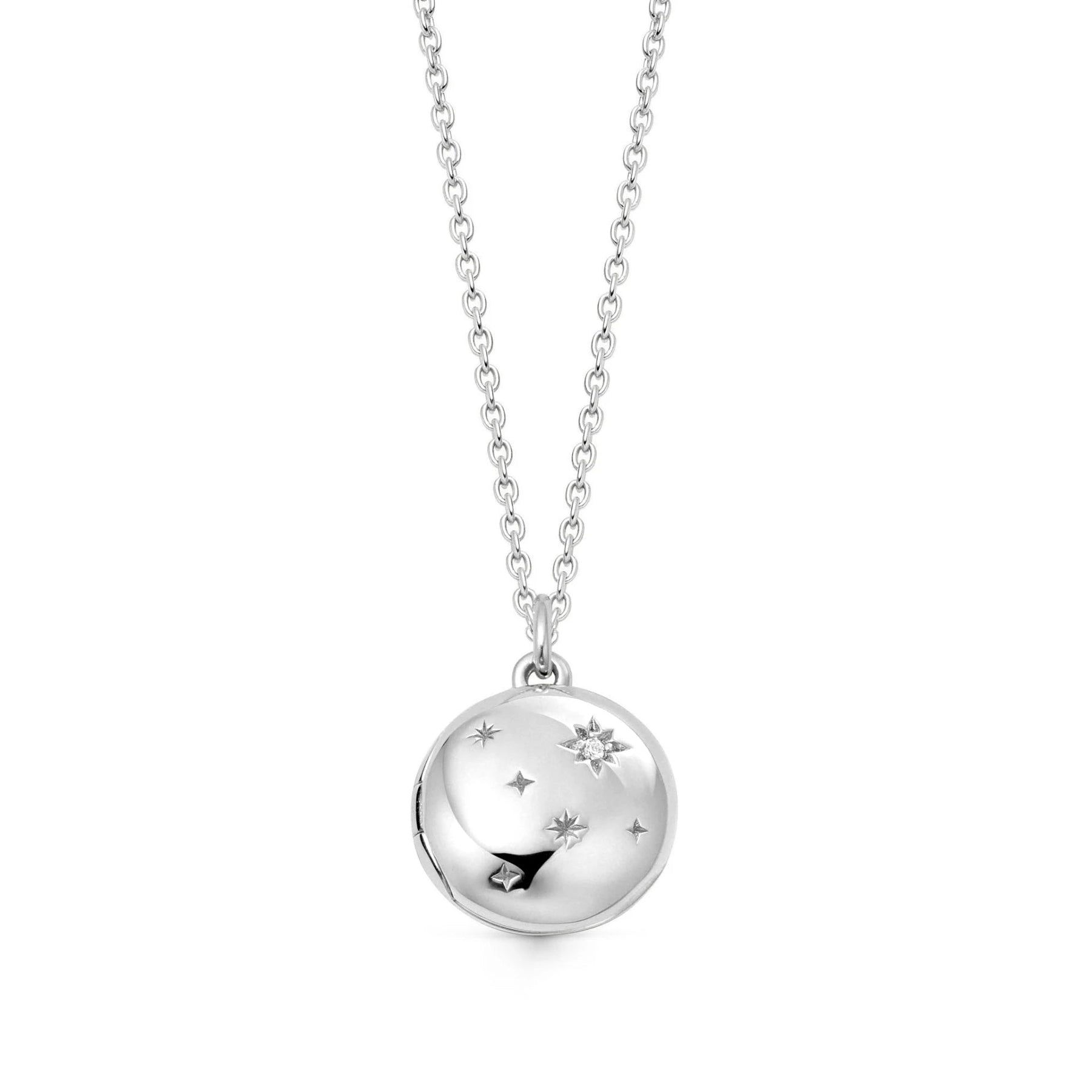 This meaningful locket is a beautiful, personalized necklace designed to hold your most treasured memories. Crafted from either Sterling Silver or 18ct Gold Vermeil, this miniature locket features delicate star details and a brilliant white sapphire gemstone.
