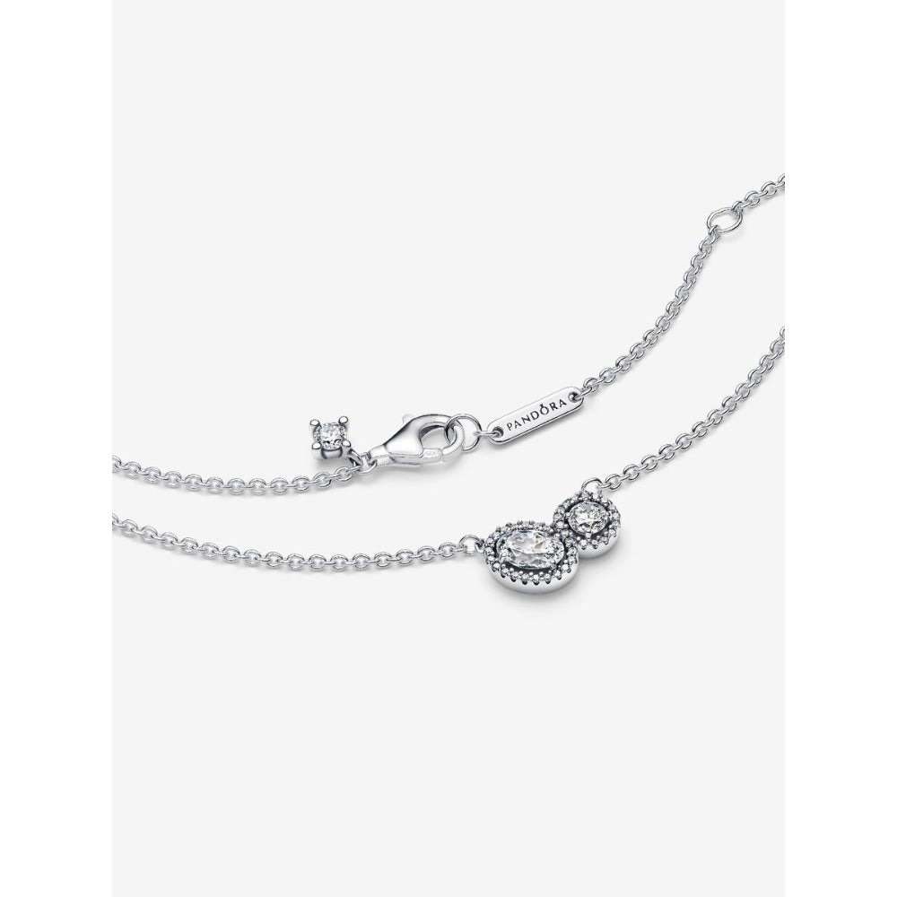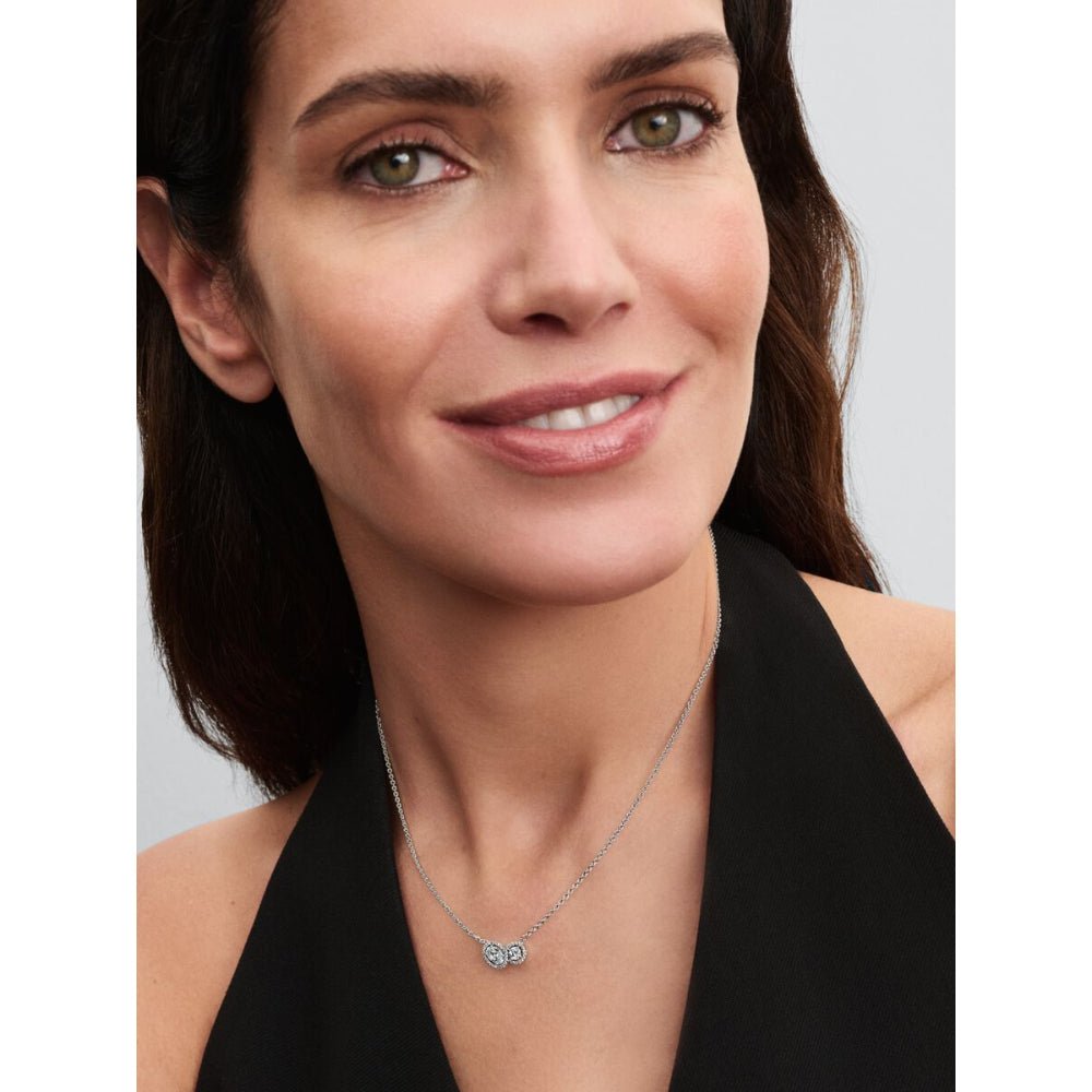 Two dazzling stones, linked by a pave halo, symbolise the beauty of connection. With an adjustable chain and a delicate accent stone, this timeless design represents love and togetherness.
