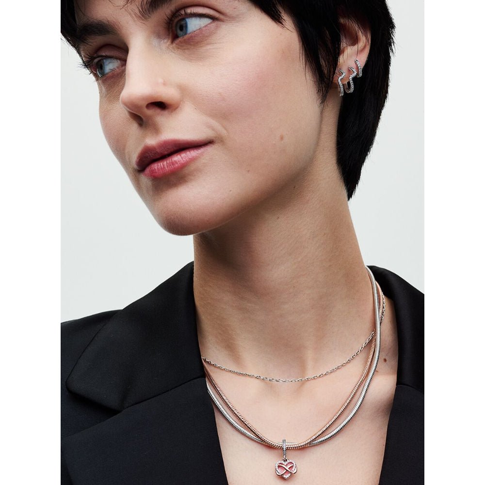 A necklace infused with subtle symbolism. Each link of this elegant sterling silver chain is shaped like an infinity loop, and the subtle twisted design creates a playful sense of movement to symbolise a love that will last forever.
