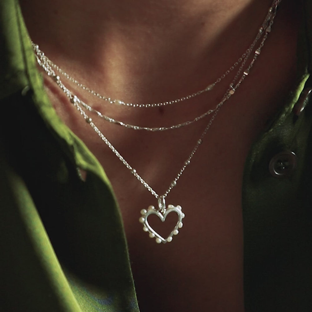 Add some heart to your life with this gorgeous necklace! Perfect for giving or getting, the heart pendant is surrounded by seed pearls and dangles from Daisy's popular bobble chain. You won't want to miss out on this unique and charming piece.