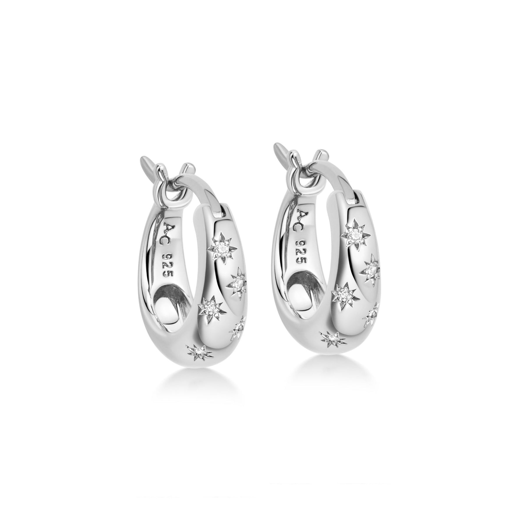 Sterling Silver Celestial Tiny Star Mini Huggie Hoop Earrings