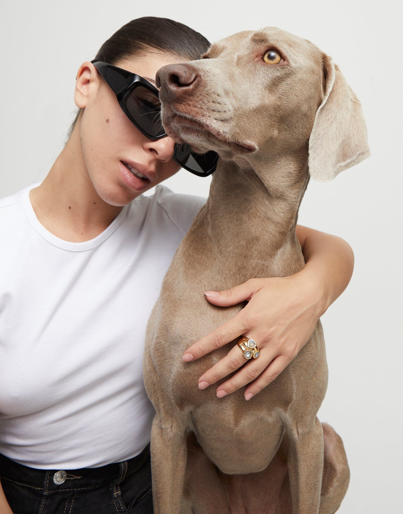 UNOde50 Gold Sparkling Multicolor Triangular Crystals Ring